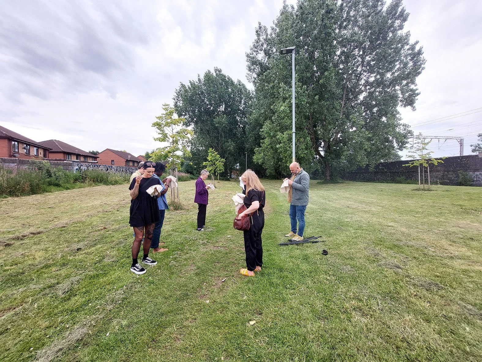 Walking and making with others are social encounters, ones that privilege connections and interactions between people. Both walking and making, as previously discussed, create space for reflective and critical thinking. Walking and making with others, similarly create space – space for conversation and shared experience. Through talking, sharing and engaging in dialogue, participants in a walking / stitching activity can become involved in each other’s lives, thinking-with and through others as part of a shared experience. Shared stories invite others to share, conversations become meaningful and often explore topics seemingly far removed from the original act of stitching or walking.